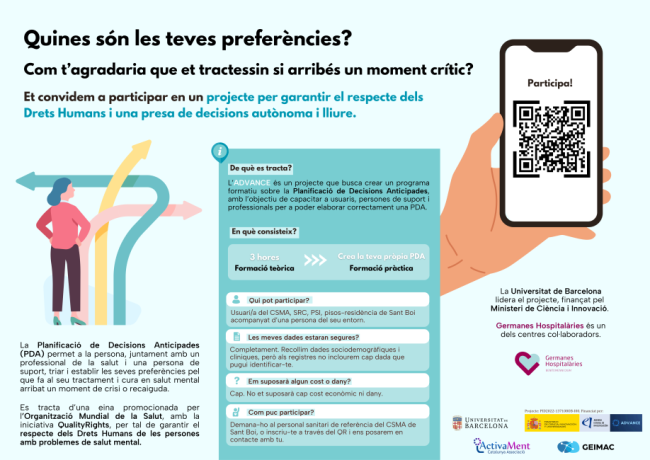 La Universitat de Barcelona, amb el finançament del Ministeri de Ciència i Innovació, i la col·laboració de centres com Germanes Hospitalàries, ha posat en funcionament l’ADVANCE, un projecte que busca crear un programa…
